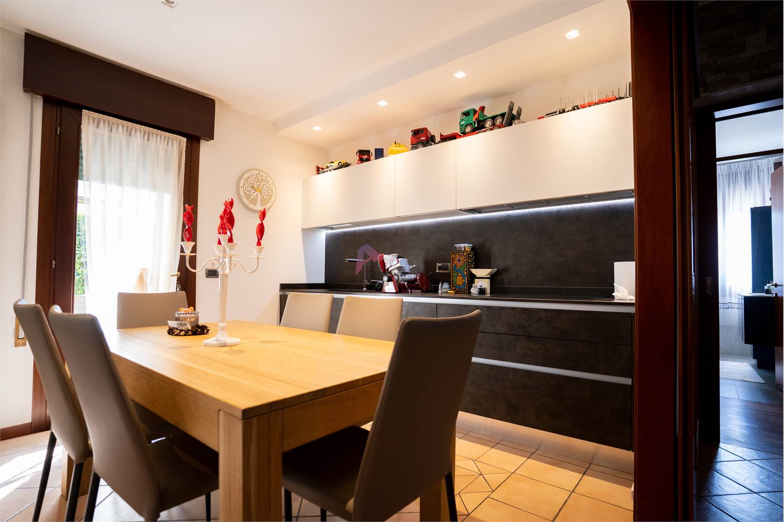 Le dotazioni moderne, tra cui serramenti e impianto elettrico nuovi, oltre a un impianto fotovoltaico da 13 kWh con batterie di accumulo da 3 kW, assicurano comfort abitativo ed efficienza energetica.