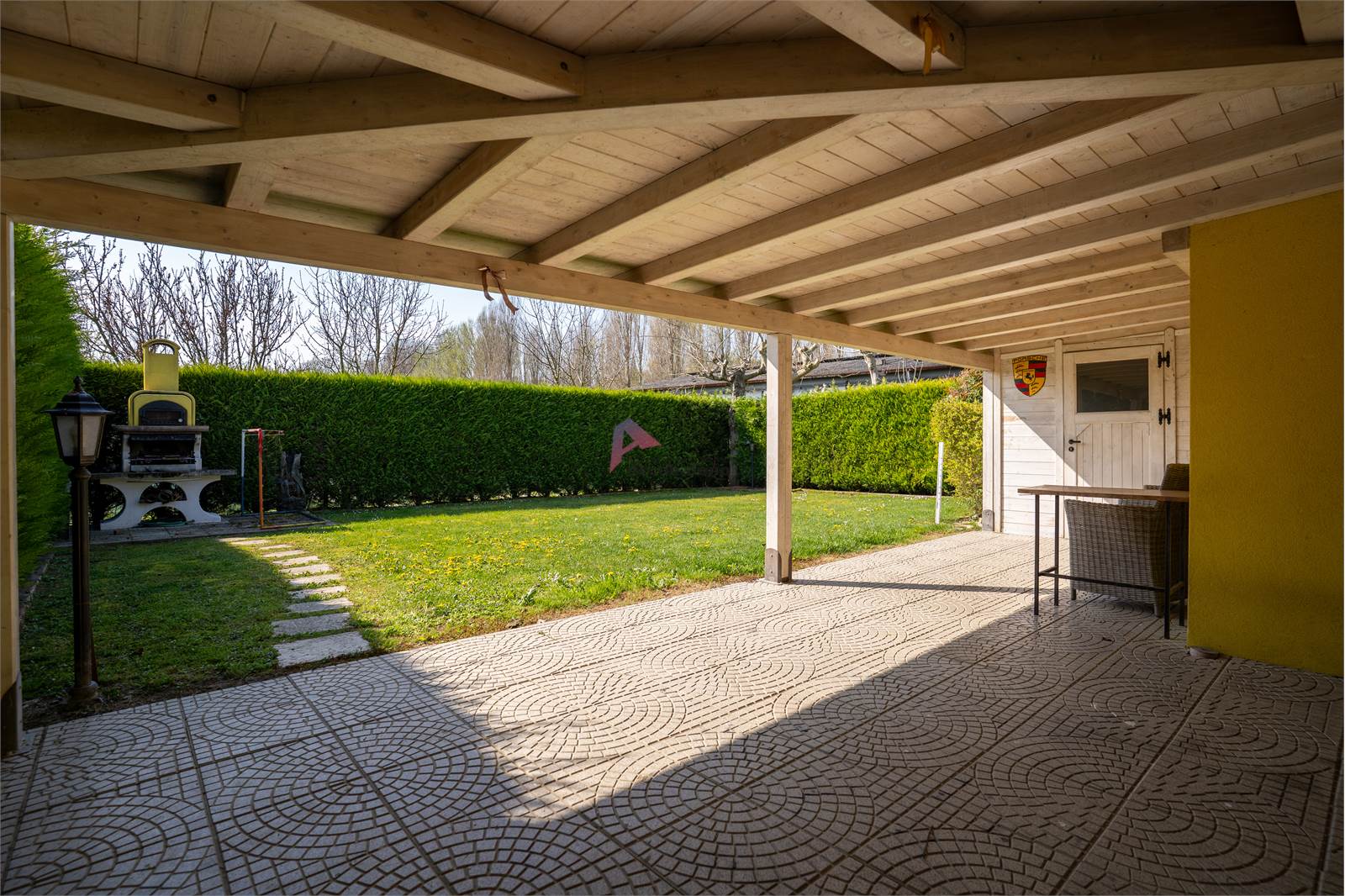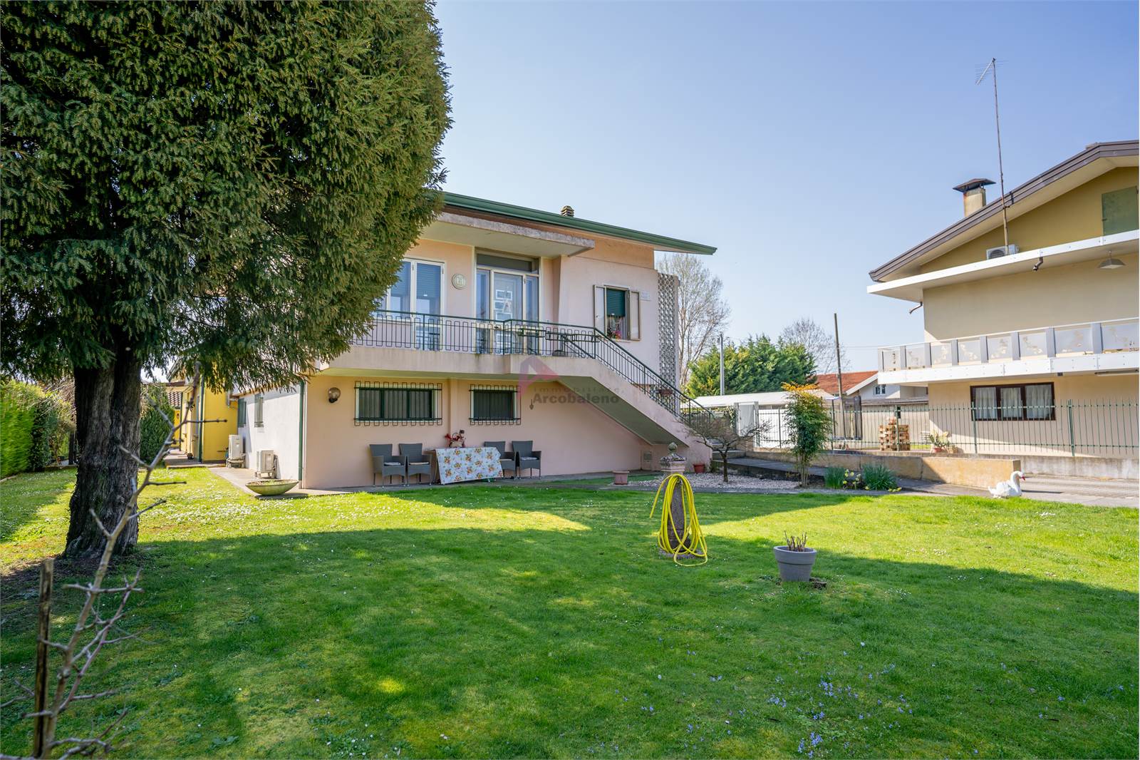 A valorizzare ulteriormente la proprietà è il grande giardino di oltre 900 mq, uno spazio verde ideale per il relax e la vita all’aperto, all’interno del quale trovano posto un magazzino, un garage e una caratteristica casetta in legno. In continuità con l’area residenziale si estende un terreno agricolo di oltre 4.000 mq, perfetto per chi desidera coltivare, investire o semplicemente godere di ampi spazi naturali.