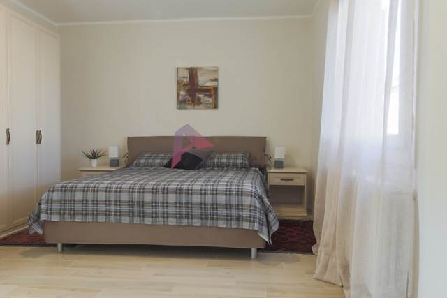 Al primo piano si accede a un'altra unità, caratterizzata da ambienti spaziosi e luminosi, con due ampie camere matrimoniali, una delle quali dotata di angolo cottura, ideale per garantire maggiore privacy agli ospiti o per creare una zona living separata, bagno, ripostiglio e un incantevole terrazzo di 40 mq, perfetto per cene all'aperto, momenti di relax o per godersi il sole durante la bella stagione.