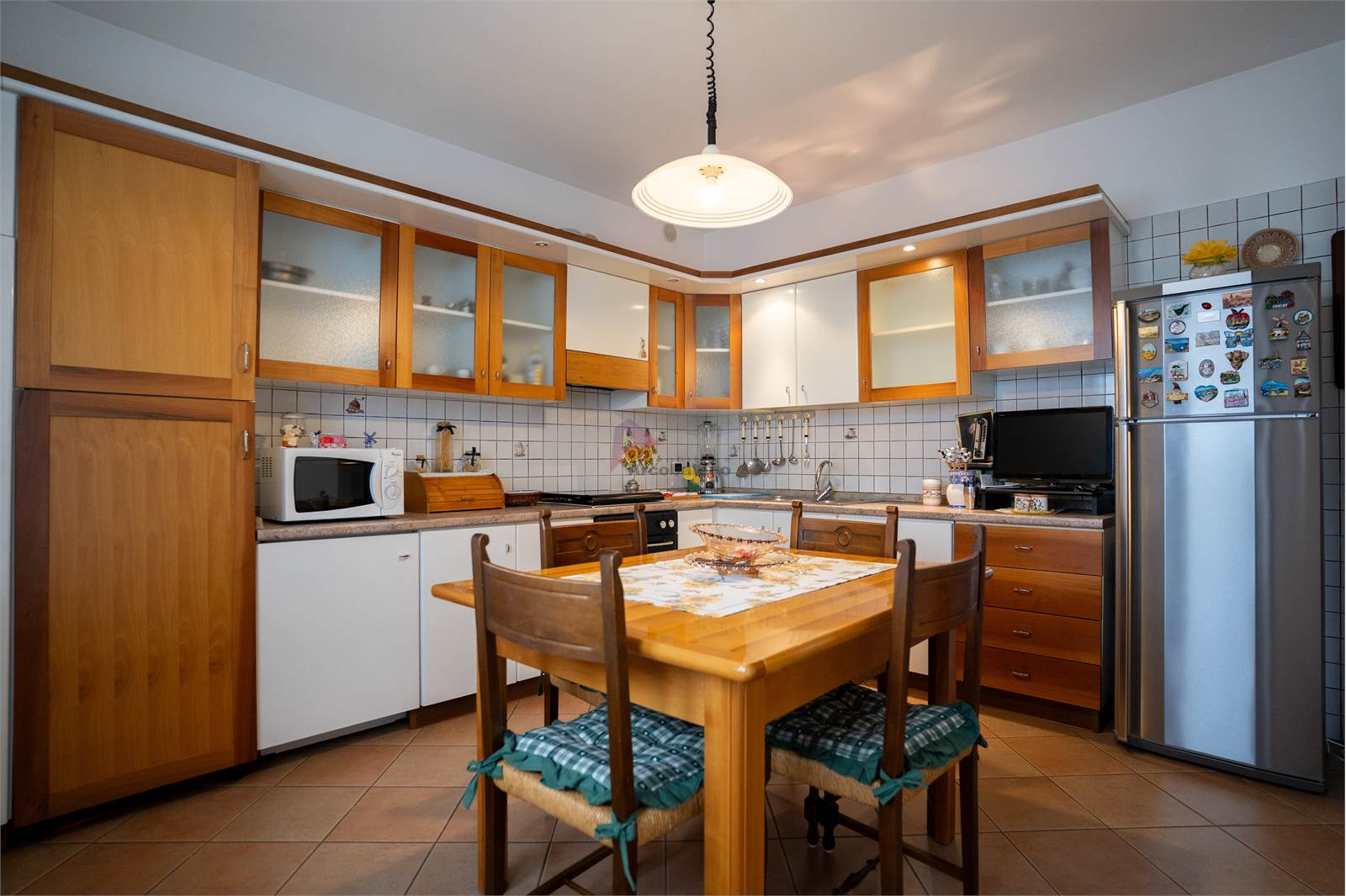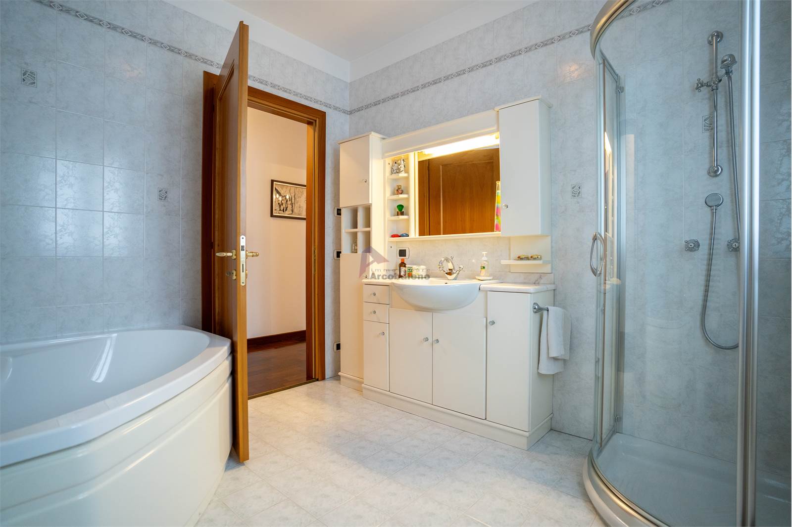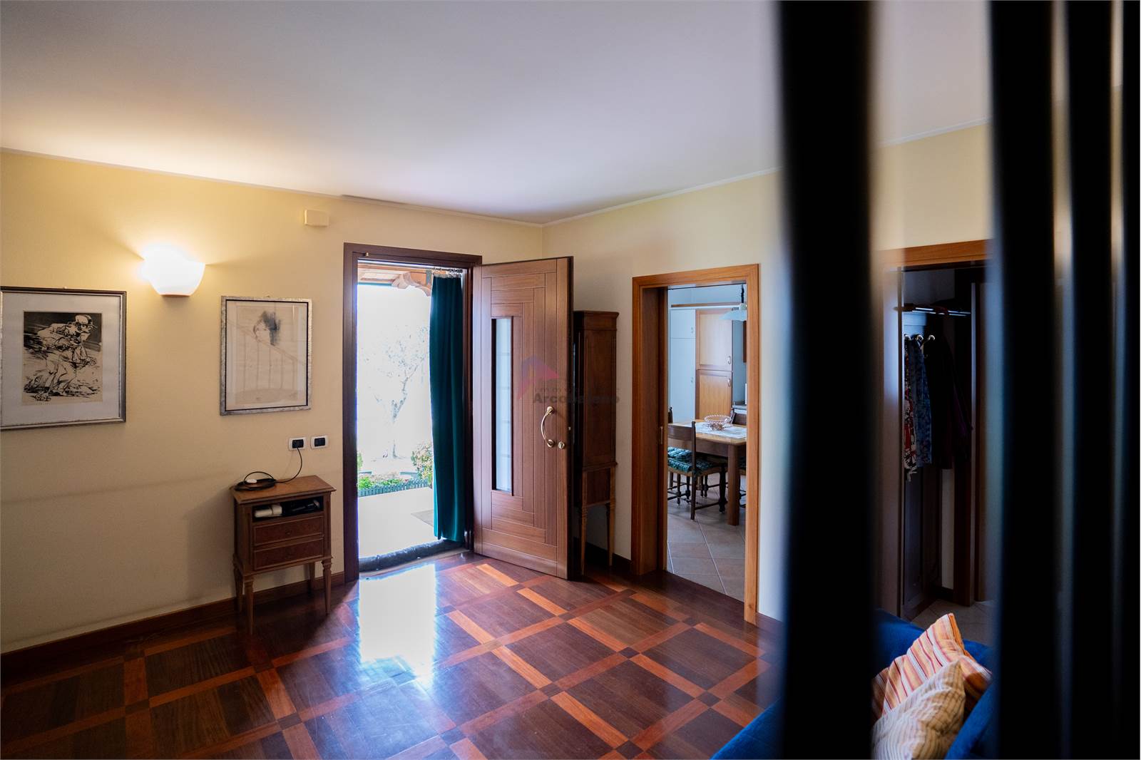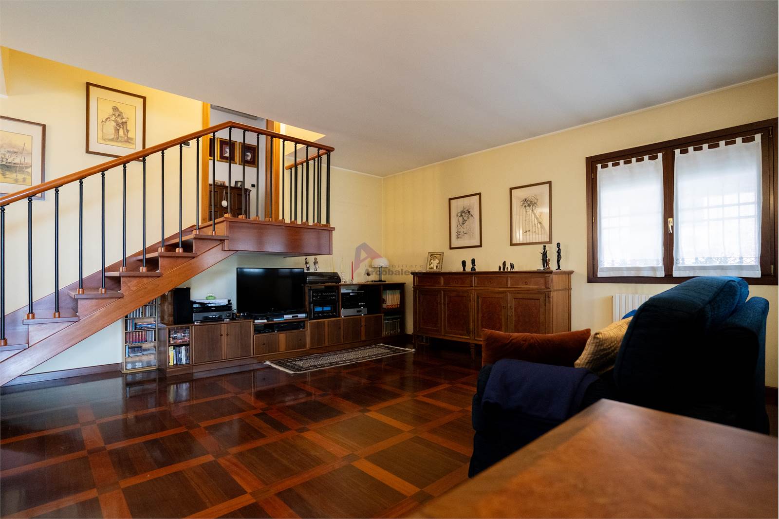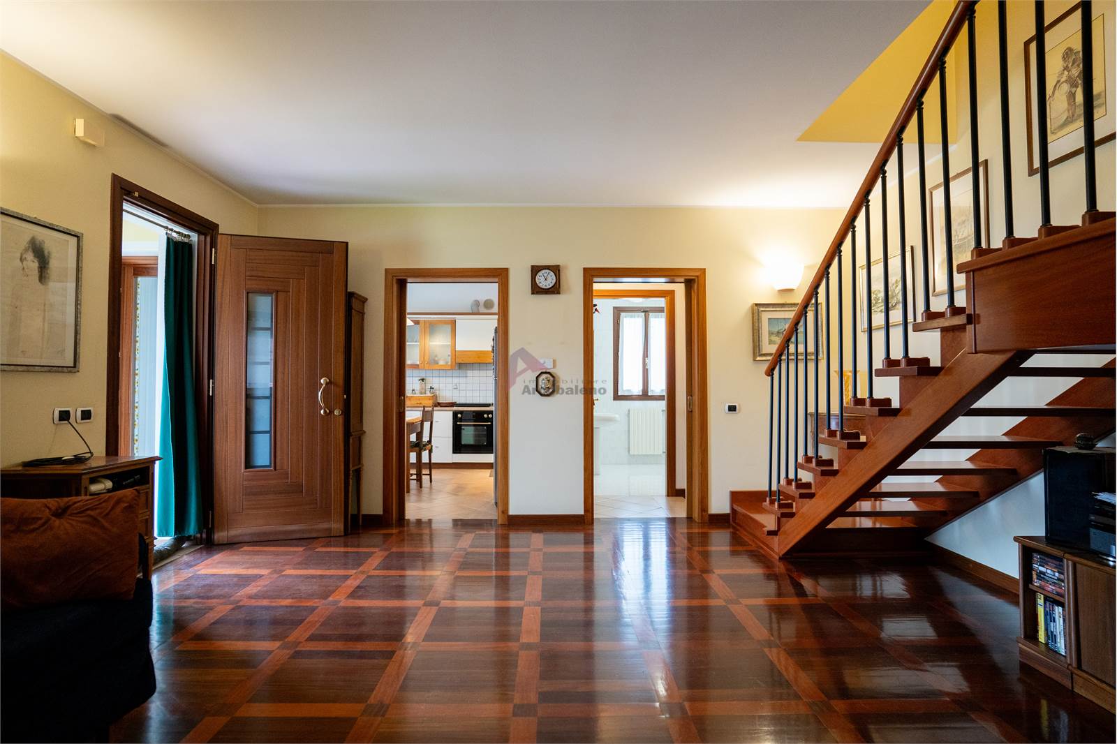 La proprietà accoglie con un elegante porticato che introduce direttamente all’ingresso dell’abitazione, dove si apre un luminoso soggiorno che crea un ambiente caldo e accogliente per la vita familiare. La cucina, funzionale e ben distribuita, completa la zona giorno insieme a un bagno di servizio. Scendendo di pochi gradini si accede alla zona dedicata ai servizi, dove troviamo una comoda lavanderia e il garage dotato di basculante elettrico, pratico e facilmente accessibile.